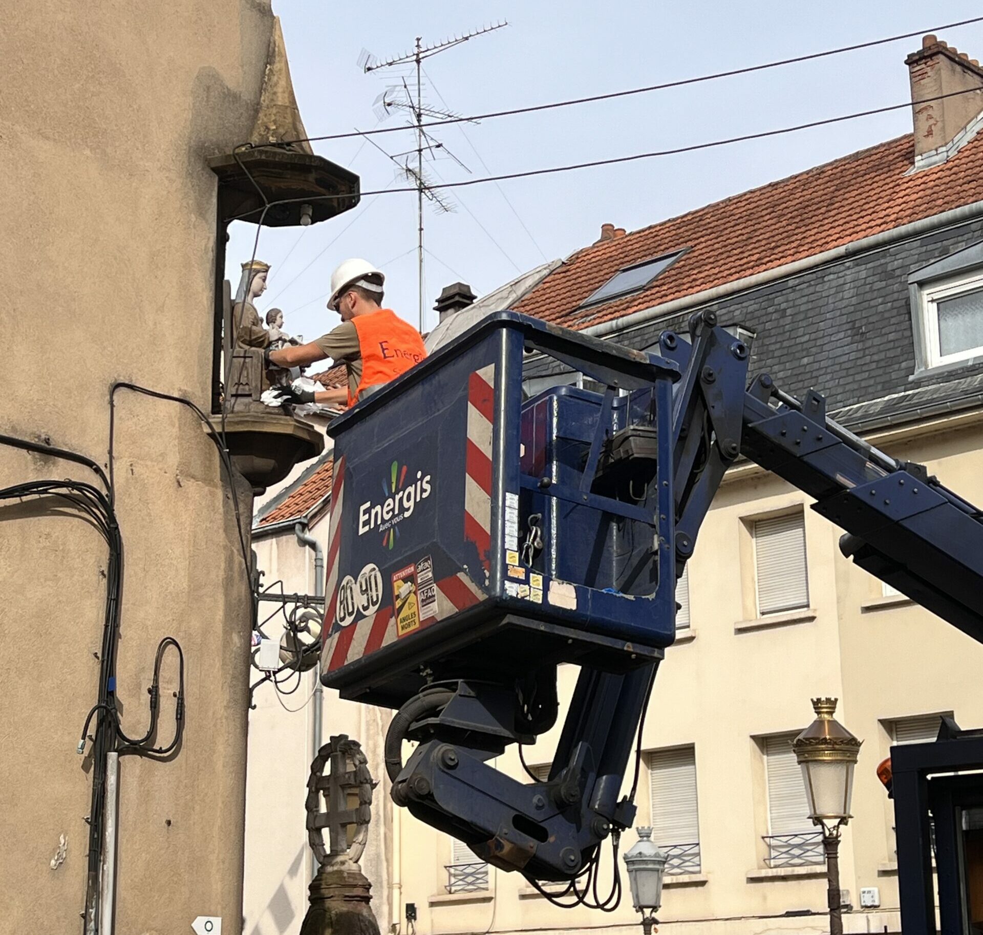 Ce mardi 14 août, Energis a contribué au nettoyage de la statue de la Vierge Marie située rue Poincaré devant la fontaine Sainte-Marie, à l’occasion de la célébration de l’Assomption du 15 août.